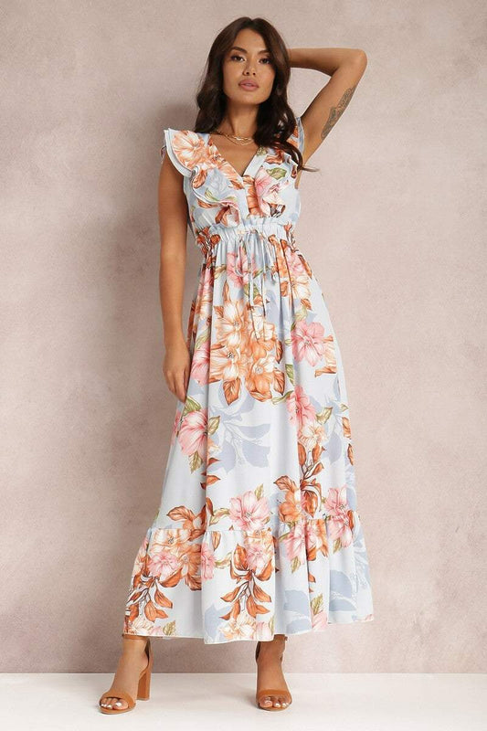 Il Floral Ruffle Hem Sleeveless High Collar Midi Dress è un capo bello e femminile....