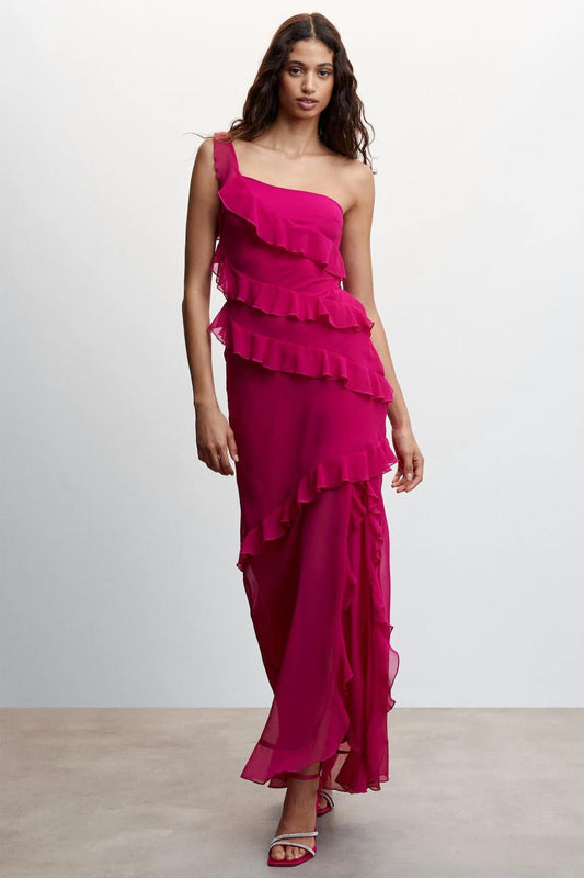 Il maxi abito asimmetrico senza maniche con scollo a V e orlo increspato è un...